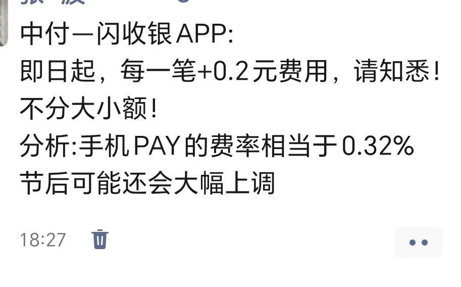 近期,随着259号文过渡期的临近结束,个人POS费率上涨的消息层出不穷,特别是在国庆假期期间,这一现象得到了进一步的证实。多家支付公司在国庆前夕纷纷宣布涨价,其中包括中付—闪收银。